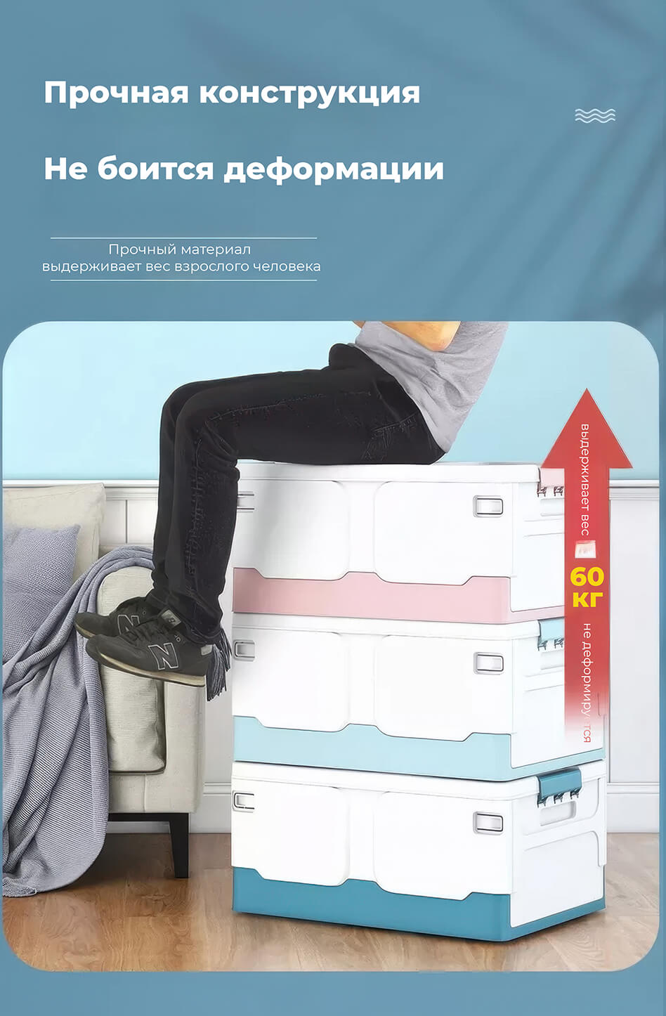 Складной ящик 480х360х240 мм, бело-голубой – стильное и практичное решение для хранения